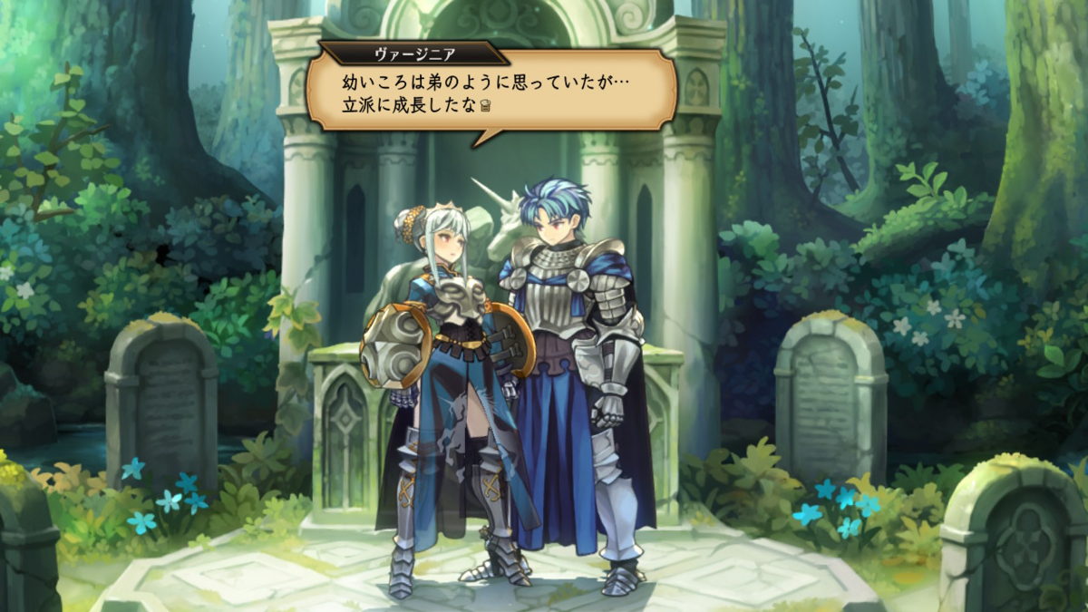 個人的に断トツトップだったのは主人公と同様にコルニア王国の亡国の王族・ヴァージニアとの親密度2のもの。久々に会い、子供の頃に遊んだ遊戯をまたやって、その戦い方が成長していなかった――というシチュエーションでこうまで心を動かされちゃあ脱帽するしかありません。